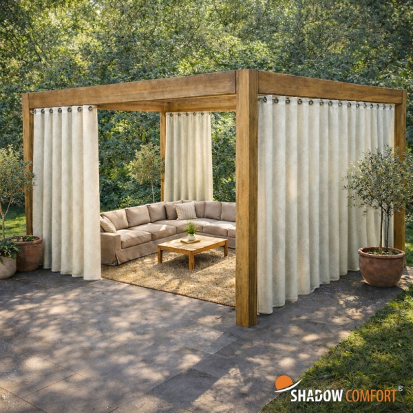 Shadow Comfort® heeft buitengordijnen ontwikkeld waarmee je gedurende het hele jaar van het buitenleven kunt genieten. De Shadow Comfort buitengordijnen zijn eenvoudig, maar zeer efficiënt en van een hoogwaardige kwaliteit HDPE doek. Hierdoor kun je in de zomer een beschut en verkoelend plekje creëren of de felle zon buiten houden. De gordijnen zijn voorzien van RVS gordijnringen aan de bovenzijde, in het midden kun je ze middels klittenband met elkaar verbinden en aan de zijkanten zijn de gordijnen voorzien van zeilogen zodat je ze hier ook kunt vastzetten. Ook zijn de gordijnen aan de onderzijde voorzien van extra elastische lussen om het gordijn nog extra vast te kunnen zetten.
